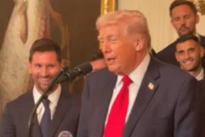 体育资讯03月06日讯 今日迈阿密国际作为美职联冠军造访白宫,特朗普在欢迎仪式上发表了讲话,其中他再次提到自己的儿子巴伦,并表示后者是梅西和C罗的铁杆球迷。据阿根廷《奥莱报》的报道,听到此话时,站在一旁的梅西用微笑来回应。